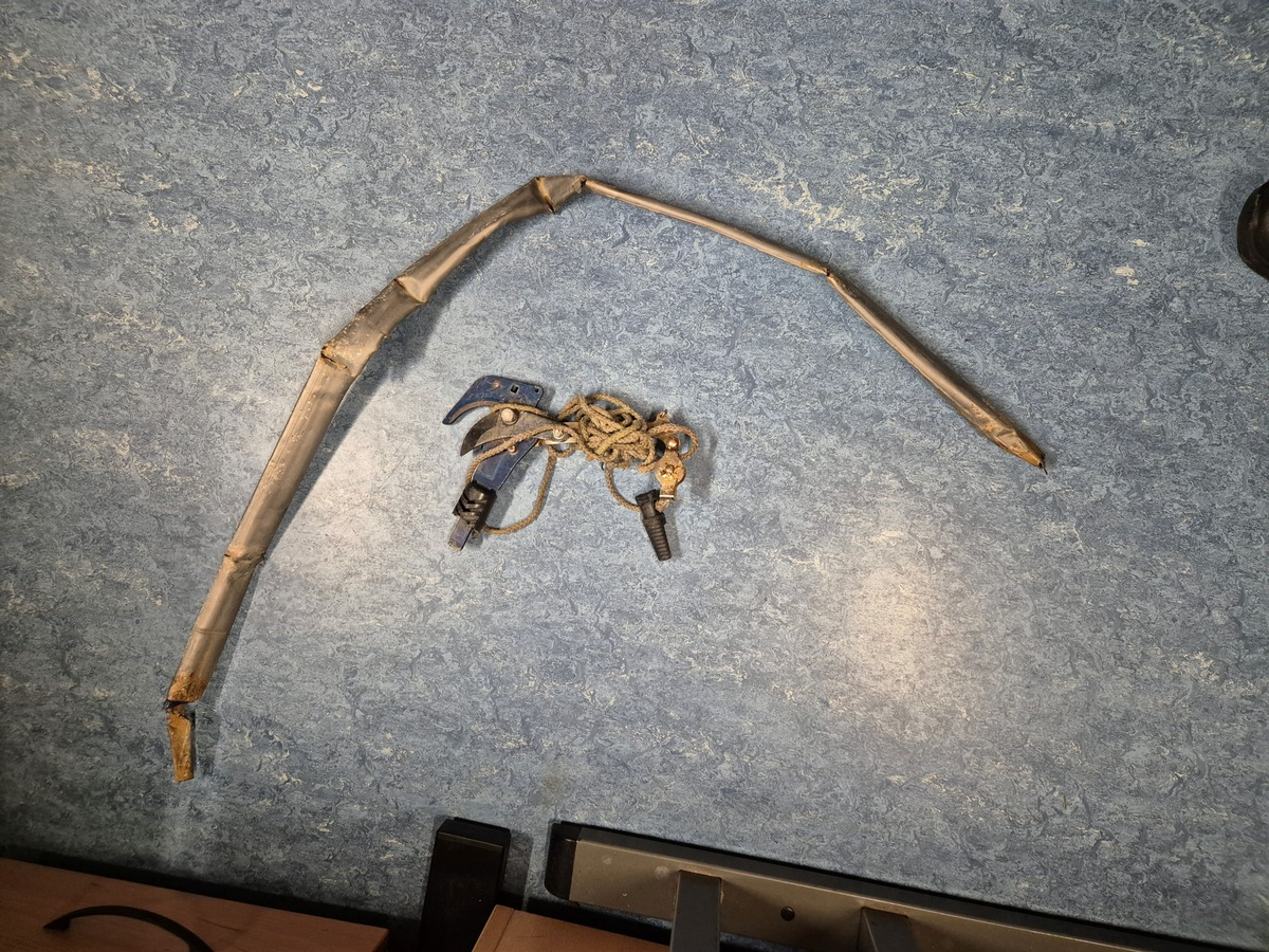 BAB 6; Kaiserslautern - Auf BAB 6 in Fahrtrichtung Mannheim, zwischen den Anschlussstellen Kaiserslautern-West und dem Dreieck Kaiserslautern, verliert ein bislang unbekannter Verkehrsteilnehmer am Montagabend gegen 22.00 Uhr Ladung in Gestalt eines "Teleskopschneiders". Ein PKW-Fahrer fährt über die Anschlussstelle Kaiserslautern-West auf die BAB 6 in Fahrtrichtung Mannheim auf, wechselt um einen langsameren Verkehrsteilnehmer zu überholen über den mittleren auf den linken Fahrstreifen und überfährt den auf der Fahrbahn befindlichen Gegenstand. Der geschädigte Fahrer setzt die zuständige Polizeidienststelle unmittelbar über den Vorfall in Kenntnis. Das Fahrzeug scheint zunächst beschädigt, jedoch uneingeschränkt fahrbereit. An der eigenen Wohnanschrift stellt der Fahrer jedoch fest, dass es auch zu einer Beschädigung des Kraftstofftanks gekommen und nahezu der gesamte Kraftzstoff ausgelaufen ist. Er verständigt einen Abschlepper. Die eingesetzte Streife kann den überfahrenen Gegenstand auf dem Standstreifen feststellen und entfernen. Am den VW Golf dürfte ein Schaden von ca. 2000 Euro enstanden sein. Die Autobahnpolizei Kaiserslautern sucht nun Zeugen, die eventuell sachdienliche Hinweise zu dem Verursacher machen können!