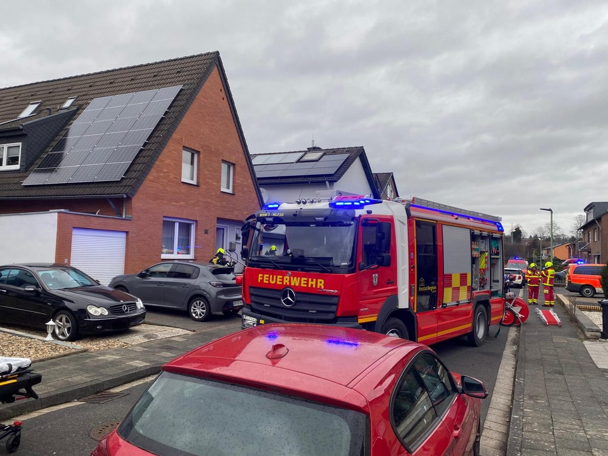 FW Bergheim: Feuerwehr rettet Mann bei Küchenbrand Über Leiter aus erstem Obergeschoss gerettet - Brand schnell gelöscht.