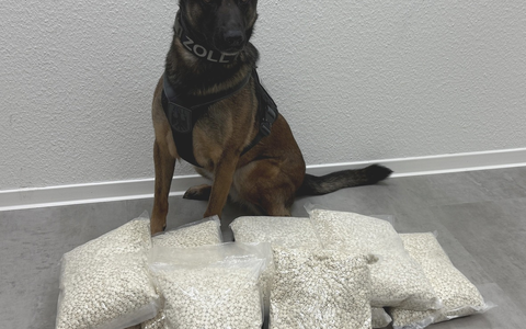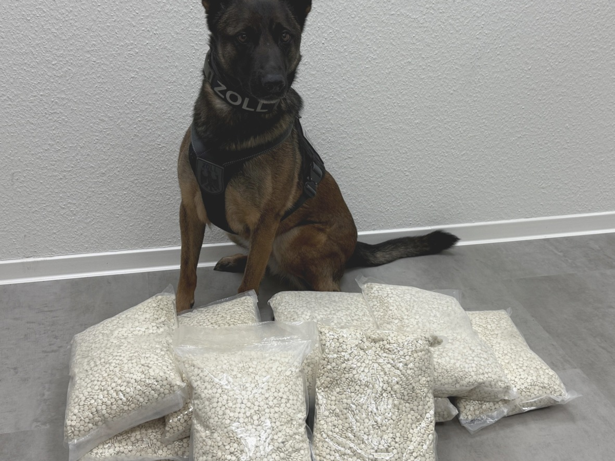 "Skadi" zeigte an zwei im Kofferraum verstauten Kartons den Geruch von Betäubungsmitteln an und beim Öffnen der Kartons kamen dann mehrere verschweißte Kunststoffbeutel mit kleinen Tabletten zum Vorschein.