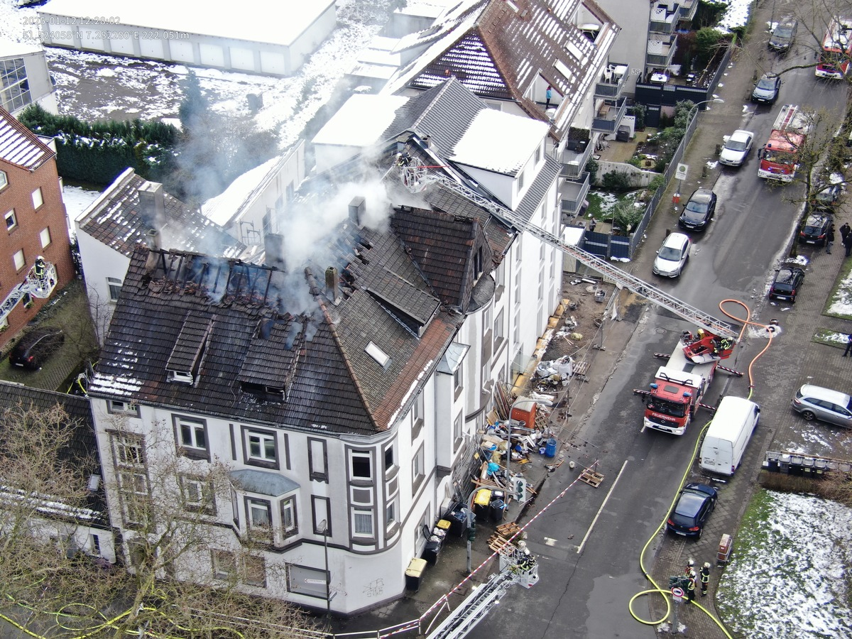 12.01.2025 - 13:29:46 | presseportal.deZur genauen Begutachtung des Dachstuhls ist ein Baustatiker an der Einsatzstelle.