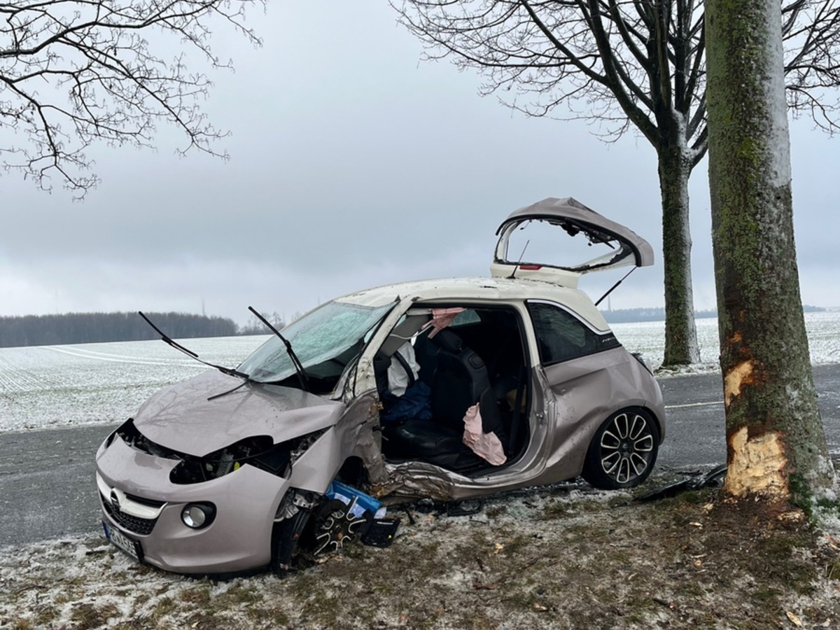 Am heutigen Samstag kam es gegen 12:00 Uhr erneut zu einem glättebedingten Unfall, als eine 32-jährige aus Dörenhagen mit ihrem Opel Corsa die Ebbinghauser Straße in Richtung Ebbinghausen befuhr. Dabei geriet sie außerhalb der geschlossenen Ortschaft an einer Steigung ins Schleudern, kam nach rechts von der Fahrbahn ab und prallte mit ihrem Pkw gegen einen Straßenbaum. Die 32-Jährige wurde dabei im Pkw eingeklemmt und musste durch die hinzugerufene Feuerwehr aus dem Wrack befreit werden. Die Dame wurde schwer verletzt in ein Paderborner Krankenhaus gebracht. An ihrem Opel Corsa entstand wirtschaftlicher Totalschaden, der auf ca. 15.000,-- EUR geschätzt wird. Auch hier stellten die eingesetzten Polizeibeamten Sommerreifen an dem Pkw fest.