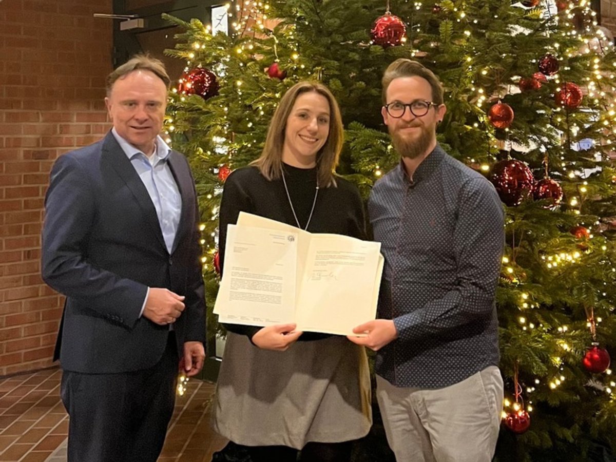 Borken - Sie waren nicht nur im richtigen Moment am richtigen Ort, sie bewiesen einen ruhigen Kopf und viel Professionalität. Bei einem Urlaub in der oberfränkischen Stadt Hof besuchte das Ehepaar Lisa und Simon Bartusch am 22. Oktober 2024 ein Hallenbad. Dabei wurden die medizinischen Pflegefachkräfte Zeugen einer lebensbedrohlichen Lage und eilten umgehend zur Hilfe: Nur einen kurzen Moment hatte ein Badegast seinen Sohn aus den Augen gelassen. Als er sich nach dem Kind umdrehte, trieb es leblos im Wasser. Das Ehepaar reagierte auf Hilfe-Rufe des Vaters und begann mit der Reanimation. Durch das schnelle und beherzte Handeln der beiden waren die Maßnahmen erfolgreich und der Junge konnte direkt durch den hinzugerufenen Notarzt und Rettungsdienst weiterversorgt werden. Der Polizeipräsident des Präsidiums Oberfranken Armin Schmelzer bedankte sich in einem Schreiben ausdrücklich bei Lisa und Simon Bartusch und sprach seine Anerkennung für ihr vorbildliches und couragiertes Handeln aus. Landrat Dr. Kai Zwicker überreichte dem Ehepaar am Mittwochnachmittag das Belobigungsschreiben. "Dass Sie das Kind retten konnten ist eine schöne Nachricht, gerade jetzt kurz vor Weihnachten", so Dr. Zwicker.