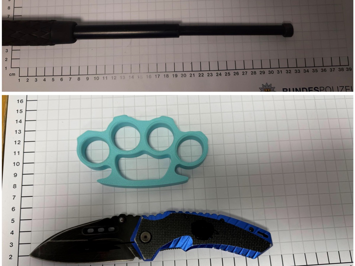Der 14-Jährige antwortete, dass er einen Schlagstock dabei habe. Bei einer Durchsuchung entdeckten die Polizisten schließlich den Teleskopschlagstock, der mit einem Holster am Gürtel befestigt war. In der Bauchtasche des 15-Jährigen fanden die Polizisten einen Schlagring und ein Einhandmesser. Die Beamten beschlagnahmten die Gegenstände.