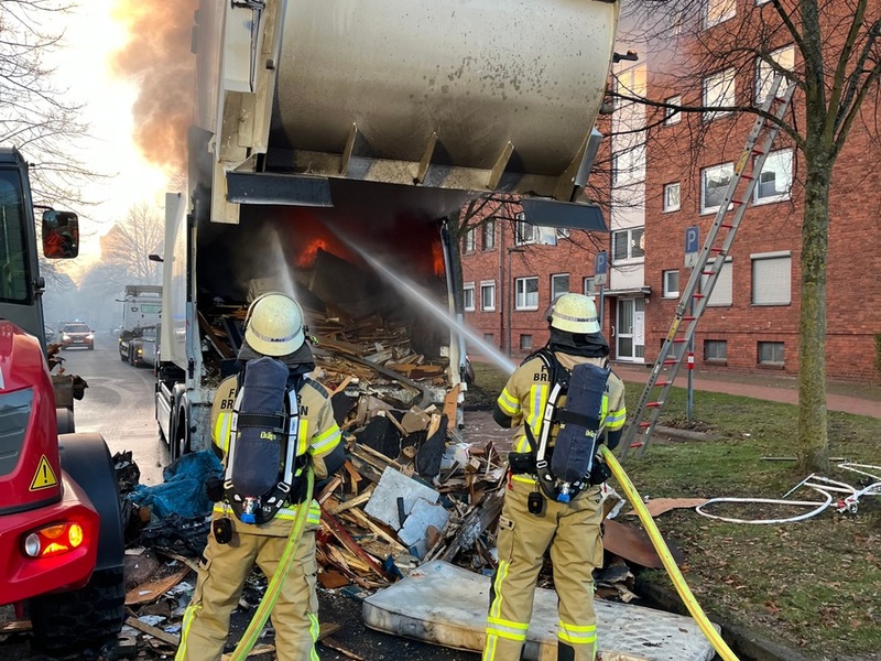 FW Bremerhaven: Brand eines Müllfahrzeugs in Geestemünde