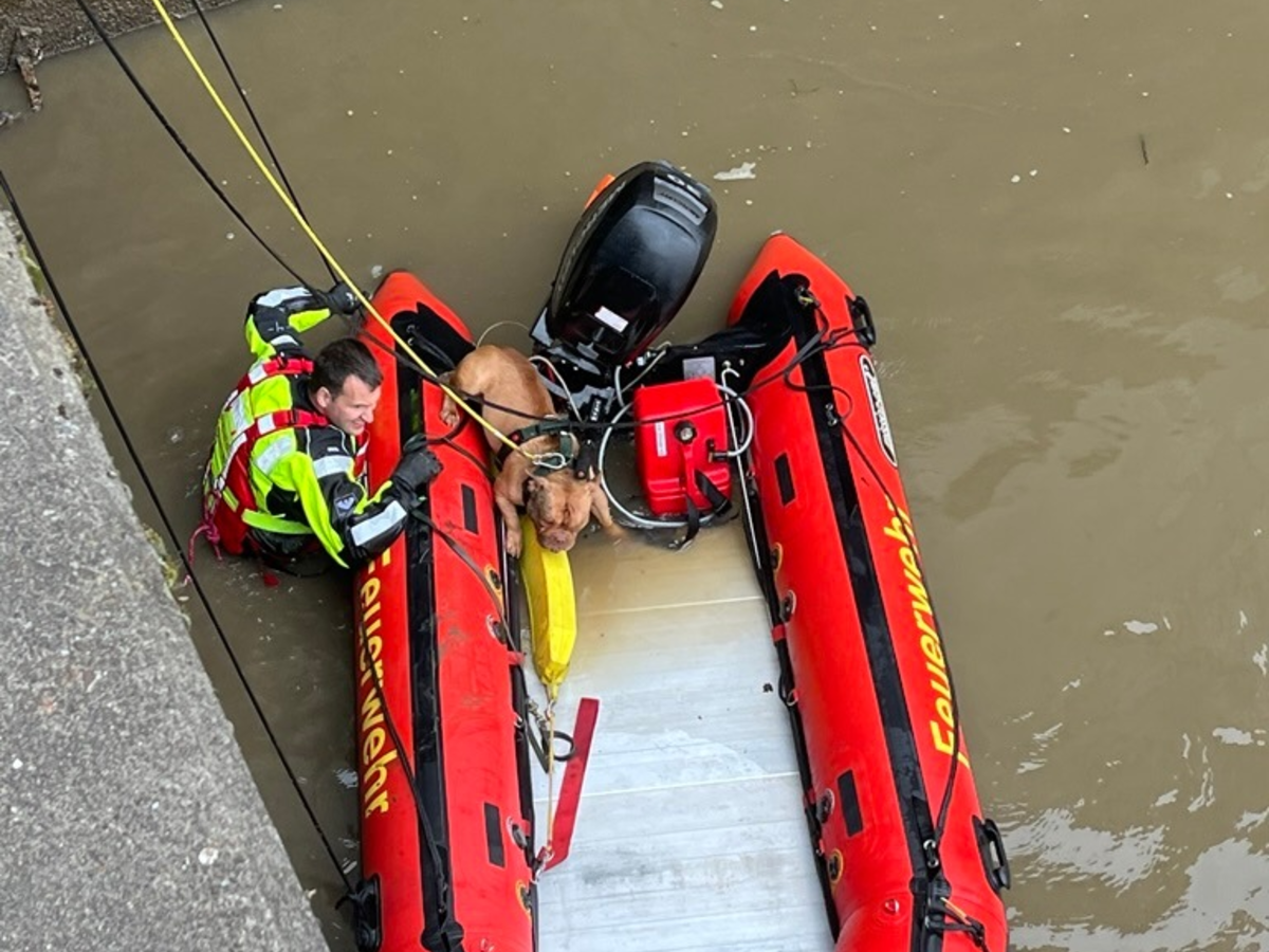 FW Bremerhaven: Feuerwehrtauchergruppe rettet Vierbeiner aus der Geeste