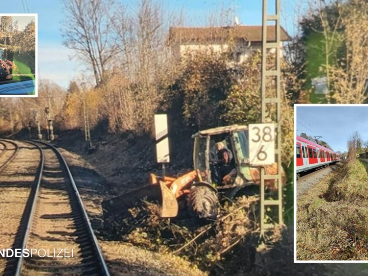 Gegen 11:30 Uhr wurde der Bundespolizei nahe des Bahnhofes Tutzing ein Bagger gemeldet, der ins Gleisbett gerutscht sein soll. Ermittlungen ergaben, dass ein 73-jähriger Deutscher mit Grünschnittarbeiten beschäftigt war. Hierbei durchbrach der Bagger des Mannes aus dem Landkreis Wolfratshausen einen Maschendrahtzaun und rutsche eine Böschung hinab; geriet dabei beinahe in den Gleisbereich. Die herabgelassene Schaufel tuschierte den Gleiskörper, an dem leichte Beschädigungen festgestellt wurden, und verhinderte ein Weiterrutschen in den Schienenbereich.