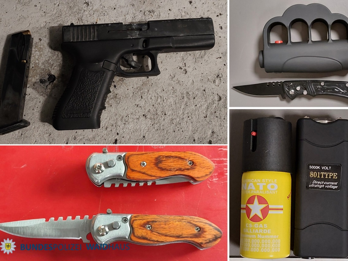 Am Samstag kontrollierten die Bundespolizisten an der A6 einen 17-jährigen ukrainischen Staatsbürger. Der Jugendliche war mit einem Fernreisebus aus Tschechien nach Deutschland eingereist. Bei der Überprüfung seiner Umhängetasche fanden die Beamten ein verbotenes Reizstoffsprühgerät. Bei Kontrollen in Waldsassen entdeckten die Einsatzkräfte bei zwei jungen Männern, die gemeinsam in einem PKW aus Tschechien einreisten, ebenfalls verbotene Waffen. Jeder der beiden 19-jährigen Deutschen hatte unter seinem Sitz einen Schlagring mit integrierter Elektroschocker-Funktion verstaut, der Beifahrer zusätzlich noch ein Springmesser. Nur kurze Zeit später geriet ein 21-jähriger Deutscher ins Visier der Fahnder. Auf Nachfrage gab der Mann zunächst an, keine verbotenen Gegenstände im Fahrzeug mitzuführen. Doch auch bei ihm wurden die Beamten fündig. Zunächst fanden sie im Kofferraum ein verbotenes Reizstoffsprühgerät und schließlich hatte er Mann unter dem Fahrersitz noch ein Elektroimpulsgerät ohne Zulassung versteckt. Verbotene Springmesser griffbereit Bei Kontrollen am Sonntag stellten die Bundespolizisten bei einem 30-jährigen Türken zwei Springmesser fest. Er war als Mitfahrer in einem PKW aus Tschechien eingereist. Auch er gab zunächst gegenüber den Beamten an, keine Waffen dabei zu haben. Die beiden identischen Messer hatte er jedoch griffbereit in seiner Jackeninnentasche versteckt. In Waidhaus an der A6 fanden die Einsatzkräfte bei einem 28-jährigen Bulgaren ebenfalls ein Springmesser. Er hatte es in seinem PKW in der Mittelkonsole transportiert. Pistole aufgefunden In der Nacht zum Montag kontrollierten Bundespolizisten an der A6 einen 31-jährigen tschechischen Staatsbürger. Obwohl der Mann bei der Befragung zunächst angab, nichts Verbotenes dabei zu haben, entdeckten die Beamten in einer Ablage im Kofferraum eine sogenannte Schreckschuss-/Reizstoffpistole samt zugehöriger Munition. Da der Pistole die erforderlichen Prüfzeichen fehlen, unterliegt sie der waffenrechtlichen Erlaubnispflicht. Eine solche Erlaubnis konnte der Mann jedoch nicht vorweisen. Zudem haben die Beamten im Handschuhfach noch einen Teleskopschlagstock aufgefunden. Der Tscheche muss sich nun wegen illegalem Besitz einer Schusswaffe und Führen einer Hiebwaffe verantworten. In allen Fällen beschlagnahmten die Einsatzkräfte die Gegenstände und leiteten Ermittlungsverfahren wegen Verstößen gegen das Waffengesetz ein. Die Gegenstände landeten in der Asservatenkammer der Bundespolizeiinspektion Waidhaus.
