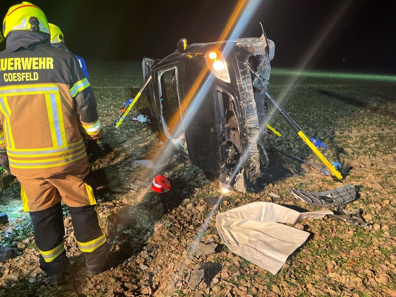 26.12.2025 - 10:19:49Coesfeld, Wiedauer Weg/ Verkehrsunfall. Gegen 18.55 Uhr fuhr ein 56-jähriger Autofahrer aus Coesfeld in Richtung Sirksfeld. Nach bisherigen Erkenntnissen fuhr der Mann über die Fahrbahn in ein angrenzendes Gleisbett, worauf das Auto letztlich auf einem Feld seitlich zum Liegen kam. Die Feuerwehr befreite den Mann aus dem Auto. Mit einem Rettungswagen kam der verletzte Coesfelder in ein Krankenhaus. Der Notarzt und ein Polizist stellten Alkoholgeruch im Atem des 56-Jährigen fest, worauf ein Arzt ihm im Krankenhaus eine Blutprobe entnahm. Die Polizisten beschlagnahmten zudem seinen Führerschein. Die Bahnstrecke war zwischenzeitlich gesperrt. Ein Rettungshubschrauber war vor Ort, kam jedoch nicht zum Einsatz.