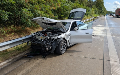 Bei Starkregen viel zu schnell unterwegs - Verkehrsunfall mit hohem Sachschaden (Foto im Anhang) ++++ Verkehrsunfall zwischen Pkw und E-Scooter
