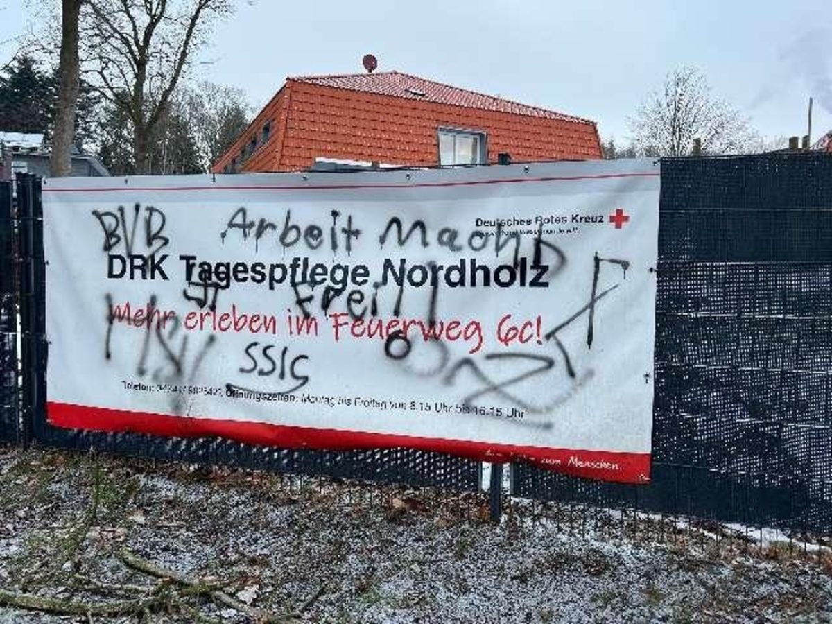Cuxhaven - Wurster Nordseeküste/Nordholz. In der Nacht von Dienstag auf Mittwoch (17./18.02.2026) sprühten unbekannte Täter an verschiedenen Orten in Nordholz unter anderem mehrere rechtsradikale Aussprüche und Hakenkreuze an verschiedenen Stellen. Betroffen waren unter anderem Bushaltestellen, Stromkästen oder auch Werbebanner verschiedener Unternehmen Hierdurch entstanden hohe Sachschäden.
