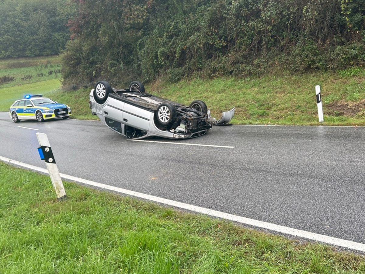 Dörrmoschel (Donnersbergkreis) - Am Samstagmorgen kam es zu einem Verkehrsunfall auf der L386 von Dörrmoschel kommend in Fahrtrichtung Dörnbach. Der 22-jährige Fahrer aus dem Donnersbergkreis verlor nach einem Wildwechsel die Kontrolle über sein Fahrzeug und überschlug sich. Das Fahrzeug blieb auf dem Dach liegen. Der Fahrer hatte Glück und blieb unverletzt. Am PKW entstand ein Totalschaden. Dieser musste durch einen Abschleppdienst geborgen werden. Da aus dem beschädigten PKW nach dem Unfall Betriebsstoffe austraten, wurde auch die Feuerwehr hinzugezogen. |hil