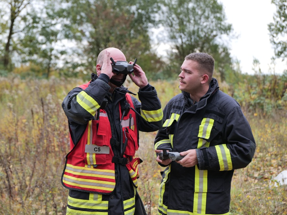 Da zunächst auch nicht ausgeschlossen werden konnte, dass sich Personen im Gebäude befinden, wurde umgehend die Drohne des Fernmeldezuges von der Feuerwache 1 (Mitte) angefordert. Sie sollte in erster Linie eine Erkundung des Innenraums aus der Luft ermöglichen, um festzustellen, ob sich noch Personen im Gebäude aufhalten, und zugleich Hinweise auf die Ursache der Verrauchung liefern.