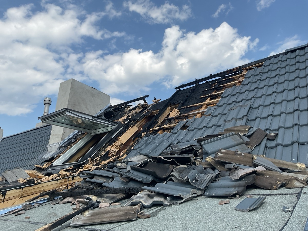 02.05.2025 - 18:35:05 | presseportal.deDie Meldung bestätigte sich vor Ort. Ebenfalls wurde bei der Erkundung festgestellt, dass an dem Dachgeschoss kurz zuvor noch Bauarbeiten stattgefunden hatten. Es wurden sofort zwei Drehleitern mit jeweils einem Trupp unter schwerem Atemschutz in Stellung gebracht. Zudem wurde ein Wenderohr zur Abgabe von großen Wassermengen von einer der Drehleitern in Betrieb genommen, um direkt mit der Brandbekämpfung zu beginnen. Glücklicherweise hatte sich das Feuer nicht auf das Gebäudeinnere ausgebreitet, jedoch aber auf die Holzfaserdämmplatten der Dachhaut. Zudem befand sich das Dachgeschoss noch im Rohbau. Es befanden sich keine Personen vor Ort in Gefahr und es wurde niemand verletzt. Ein Baustellenmitarbeiter konnte vor Eintreffen der Feuerwehr selbstständig das Dach verlassen. Die Dachhaut musste teilweise unter starker körperlicher Anstrengung abgenommen werden, um Glutnester abzulöschen und nicht betroffene Gebäudeteile zu überprüfen.