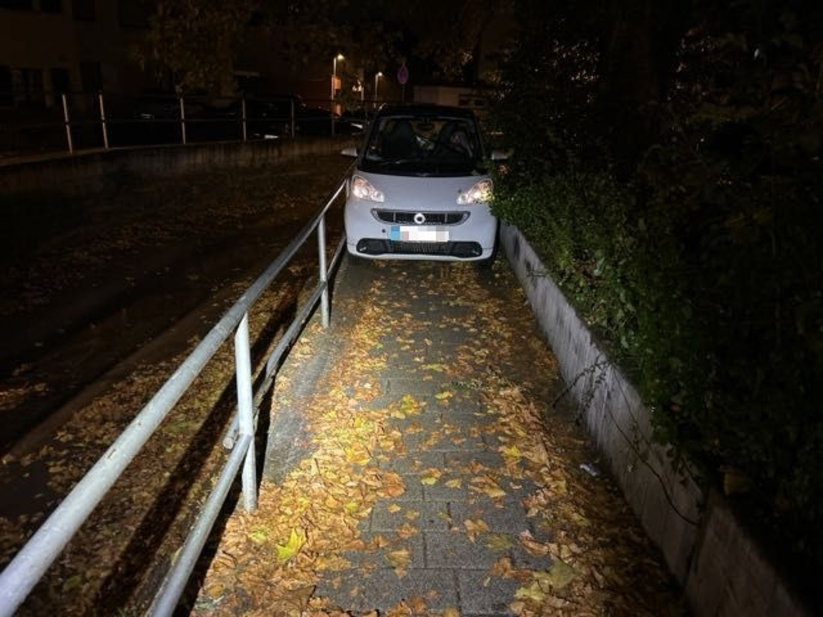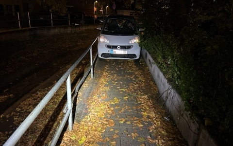 Zwischen Geländer und Mauer gefangen: Smart-Fahrer fuhr sich auf schmalem Gehweg fest