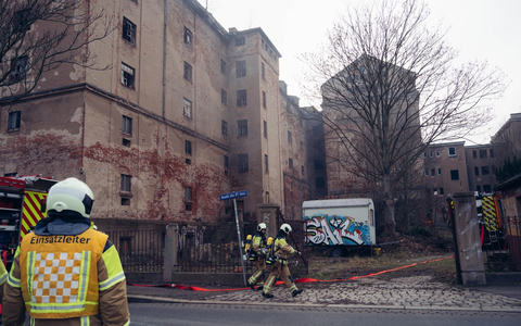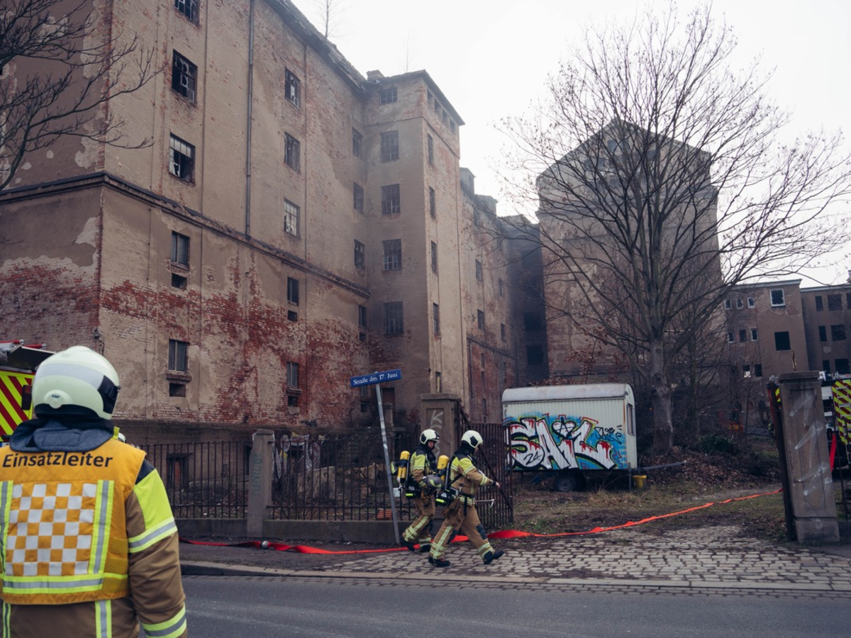 Aus noch ungeklärter Ursache kam es am heutigen Tag erneut zu einem Brand in der Ruine der ehemaligen Mälzerei an der Straße des 17. Juni in Dresden-Niedersedlitz. Passanten alarmierten die Feuerwehr über den Notruf 112, nachdem sie dichten schwarzen Rauch bemerkten, der aus mehreren Fenstern eines Gebäudeteils drang und diesen einhüllte. Beim Eintreffen der Einsatzkräfte war der Brandgeruch bereits deutlich wahrnehmbar. Aufgrund des stark eingeschränkten Zugangs zum Gebäude sowie der akuten Einsturz- und Absturzgefahr gestaltete sich die Erkundung zunächst schwierig. Über eine Drehleiter wurde der Bereich, in dem der Brand vermutet wurde, von außen kontrolliert. Anschließend gingen mehrere Trupps unter Atemschutz in das Gebäude vor und lokalisierten den Brand, der sich auf Unrat im ersten Obergeschoss beschränkte. Der Brand konnte mithilfe eines Strahlrohrs schnell gelöscht werden, wodurch eine Ausbreitung auf weitere Gebäudeteile verhindert wurde. Verletzte gab es nicht. Die Polizei hat die Ermittlungen zur Brandursache aufgenommen. Für die Dauer der Löscharbeiten musste die Straße des 17. Juni vollständig gesperrt werden. Im Einsatz sind 30 Kräfte der Feuer- und Rettungswachen Striesen und Übigau, der Rettungswache Friedrichstadt, der B-Dienst, der U-Dienst sowie der Stadtteilfeuerwehr Niedersedlitz. Der Einsatz wird in Kürze beendet sein.