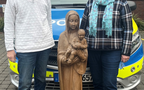 14.01.2025 - 15:53:44 | presseportal.deDie Madonna-Figur, die Anfang des Jahres in Kinderhaus gefunden wurde, ist am Dienstag (14.01.) von der Polizei an die Gemeinde übergeben worden, aus der sie stammt. Dank wertvoller Zeugenhinweise konnten die Ermittler feststellen, dass die Figur ursprünglich aus einer Kirchenschließung in Schönberg bei Kiel stammt. Die Gegenstände aus der Kirche wurden damals an Interessenten abgetreten. Durch einen Umzug fand die Madonna legal ihren Weg nach Münster.