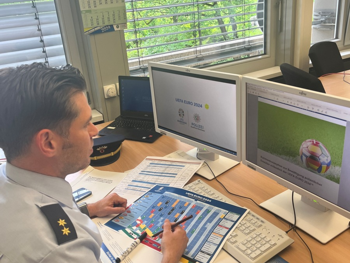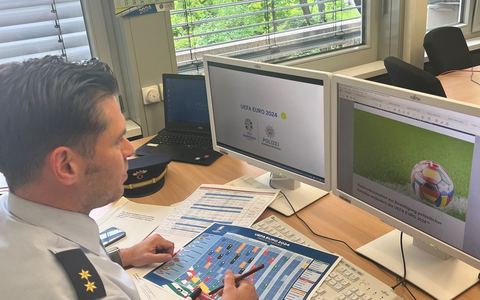Ennepe-Ruhr-Kreis - Nur auf den ersten Blick haben der Ennepe-Ruhr-Kreis und damit auch die Kreispolizeibehörde wenig Bezüge zu der Europameisterschaft 2024. Deutschland ist das Austragungsland und in Nordrhein-Westfalen liegen mit Köln, Dortmund, Gelsenkirchen und Düsseldorf gleich vier Austragungsorte in der Nähe des EN-Kreises. Außerdem ist die slowenische Nationalmannschaft in Sprockhövel, also damit auch im Kreisgebiet, untergebracht. "Diese Gegebenheiten müssen bei der Kräfteplanung und auch bei den Anforderungen aus anderen Behörden beachtet werden", erklärt Polizeioberrat Dominik Helms, Leiter der Direktion Gefahrenabwehr/Einsatz (GE). Trotz der EM dreht sich die Welt in den Kommunen, für die die Polizei Ennepe-Ruhr-Kreis zuständig sind, weiter. Ein kräfteforderndes Ereignis findet nämlich genau im Zeitraum der Europameisterschaft statt: die Gevelsberger Kirmes. "In unseren Planungen finden natürlich alle stattfindenden Feste, ob mit Fußballbezug oder nicht, besondere Beachtung. Daher haben wir im Rahmen der Vorbereitung dafür gesorgt, dass auch für kurzfristige Einsatzanlässe jederzeit Einsatzkräfte zur Verfügung stehen", führt Dominik Helms weiter aus. Zusätzlich wird die Polizei aus dem EN-Kreis heraus andere Polizeibehörden unterstützen. Auch das ist ein wichtiger Aspekt in der Kräfteplanung, der neben der Direktion GE auch alle anderen Direktionen der Behörde beschäftigt. Durch die landesweit ausgerufene Urlaubssperre aller Polizeidienststellen ist diese herausfordernde Planung möglich.
