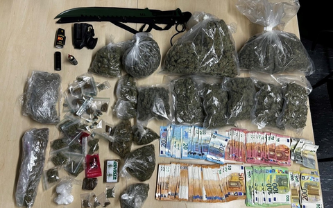 Bei der anschließenden Wohnungsdurchsuchung stellten die Beamten eine vierstellige Summe Bargeld, eine nicht geringe Menge Betäubungsmittel (ca. 2,1 kg Cannabis, ca. 225 g Haschisch, ca. 21 g Kokain) sowie eine Machete, ein Pfefferspray und eine Schreckschusswaffe sicher.