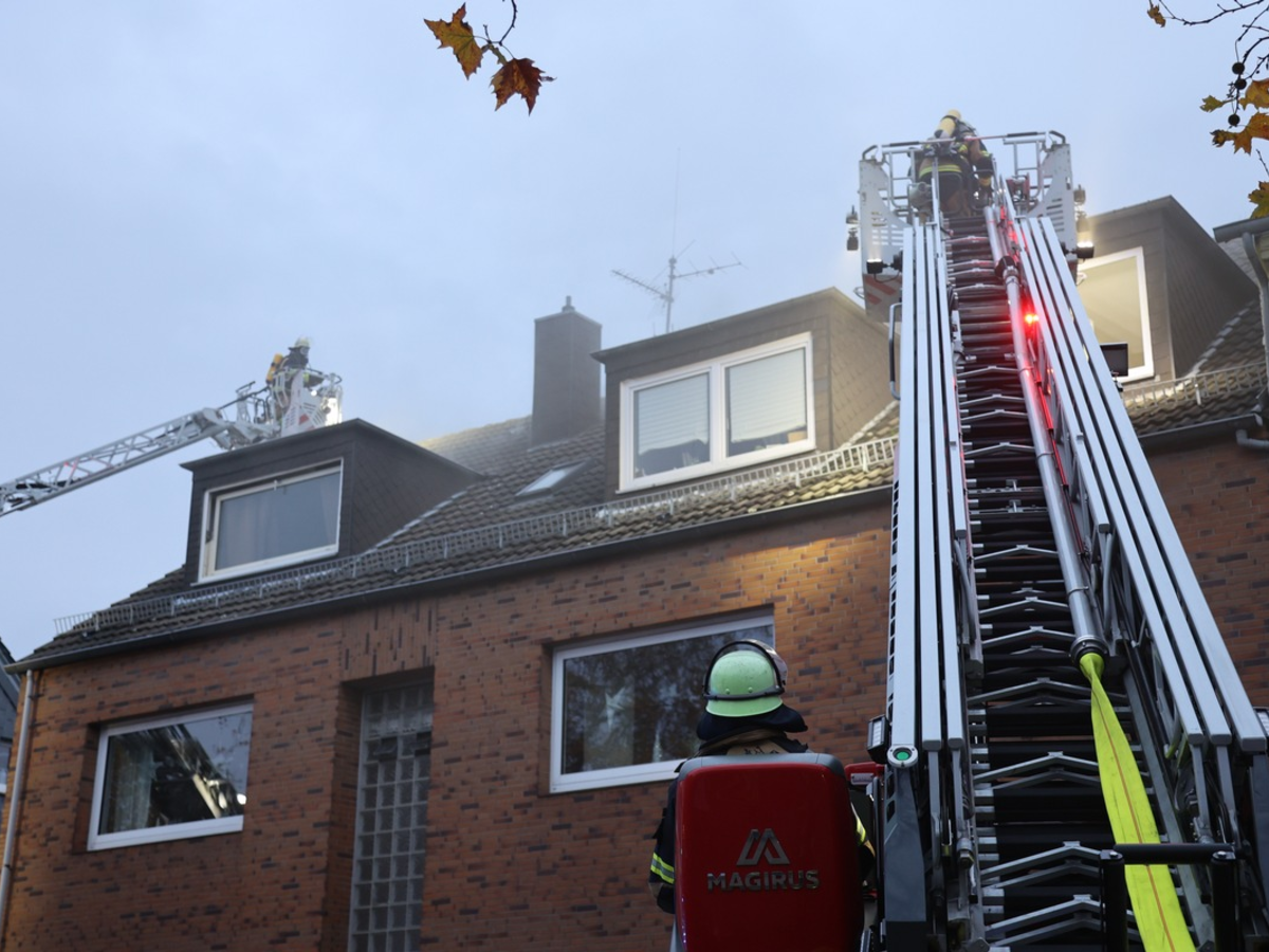 Essen-Schonnebeck, Huestraße, 16.11.2023, 16:02 Uhr - Heute, am 16.11.2023 um 16:02 Uhr, wurde die Essener Feuerwehr durch mehrere Anrufende auf eine Rauchentwicklung aus dem Dach eines Mehrfamilienhauses in der Huestraße in Essen-Schonnebeck aufmerksam gemacht. Sofort entsandte die Leitstelle umfangreich Einsatzkräfte zur gemeldeten Einsatzstelle. Beim Eintreffen stellten diese von außen eine diffuse Verrauchung aus dem Dachbereich fest. Da im Rahmen der Erkundung nicht ausgeschlossen werden konnte, ob sich noch Personen im Gebäude befanden, wurden unmittelbar zwei Trupps unter Atemschutz zur Menschenrettung eingesetzt. Glücklicherweise befanden sich die Anwohnerinnen und Anwohner nicht mehr in den Wohnungen, sodass der Schwerpunkt auf die Brandbekämpfung gelegt wurde. In den beiden Dachgeschosswohnungen konnte in der Erstphase keine Ursache für die Rauchentwicklung gefunden werden. Auf der Gebäuderückseite brannte es im Dachbereich an einer Fenstergaube. Durch zwei in Stellung gebrachte Drehleitern, die das Dach von oben kontrollierten, wurde der Brandherd im Spitzboden lokalisiert. Zwei Atemschutztrupps mit handgeführten Strahlrohren mussten die Decke in den Wohnungen zum Spitzboden gewaltsam öffnen und diesen mit der Wärmebildkamera kontrollieren. Als Ursache konnte ein brennender Dachbalken im Dachstuhl des Gebäudes ausfindig gemacht werden. Dieser wurde abgelöscht und große Teile des Dachbereiches mussten aufgenommen werden, um eine Brandausbreitung auszuschließen. Die Löscharbeiten dauerten rund zwei Stunden an. Für diese Zeit wurden die verwaisten Feuerwachen durch die Freiwilligen Feuerwehren Essen-Mitte und Essen-Stoppenberg besetzt, die den Grundschutz sicherstellten. Durch den Brand im Dach und die anschließende Brandbekämpfung konnten drei Anwohnerinnen und Anwohner nicht in ihre Wohnung zurückkehren. Diese sind von der Stadt in einem Hotel untergebracht worden. Für die Dauer der Löscharbeiten musste die Huestraße vollständig gesperrt werden. Was die Ursache des Brandereignisses ist, wird nun durch die Polizei ermittelt. Die Feuerwehr Essen war mit zwei Löschzügen, dem Führungsdienst, Sonderfahrzeugen, der Freiwilligen Feuerwehr Essen-Katernberg, sowie dem Rettungsdienst für rund zwei Stunden im Einsatz.(CS)