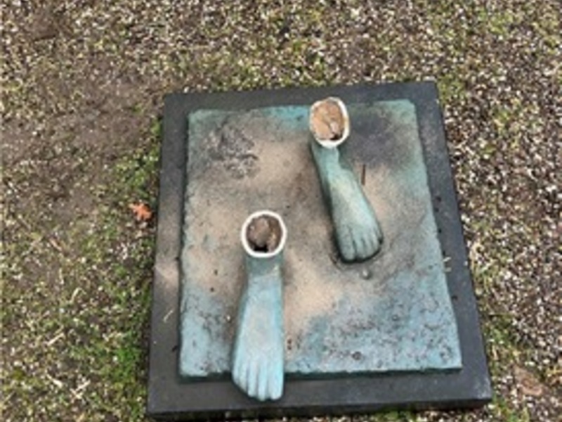 Bei der Bronzefigur handelt es sich um eine fest mit dem Boden verankerte Darstellung einer Krankenschwester. Die Unbekannten schnitten die Figur augenscheinlich mit einer Flex an den Füßen ab und transportierten die Skulptur dann ab.