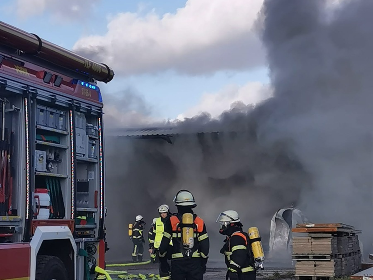 Feuer in Lagerhalle auf Obsthof im Alten Land