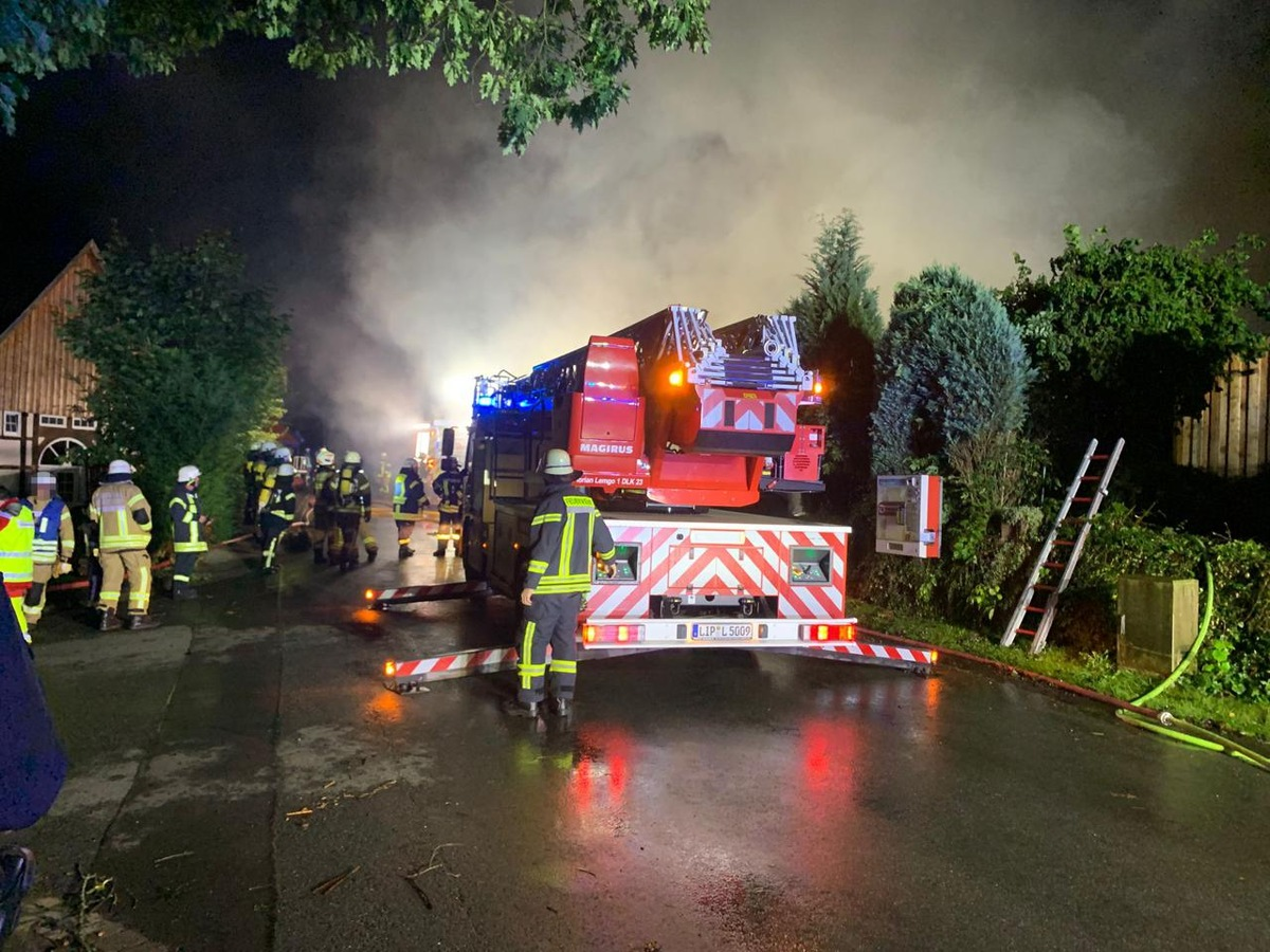 Im Einsatz waren die Einheiten Humfeld, Wendlinghausen, Zentrum sowie der Kommandodienst mit mehreren Einsatzfahrzeugen, darunter drei Hilfeleistungslöschfahrzeuge (HLF20), ein Tanklöschfahrzeug (TLF4000), ein Gerätewagen Logistik (GW-L1) und ein Einsatzleitwagen (ELW1). Unterstützt wurde die Feuerwehr durch eine Drehleiter (DLK 23/12) der Feuerwehr Lemgo, den Rettungsdienst, die Polizei sowie die Kriminalpolizei.