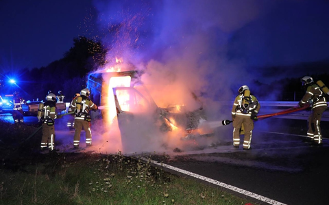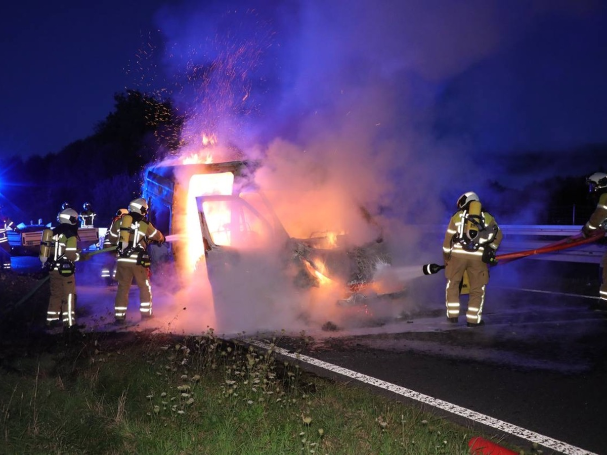 In den frühen Morgenstunden geriet aus bislang ungeklärter Ursache ein Kleintransporter in Brand. Bereits auf der Anfahrt erhielten die Einsatzkräfte die Information, dass sich die Flammen auf eine angrenzende Böschung ausgebreitet hatten.