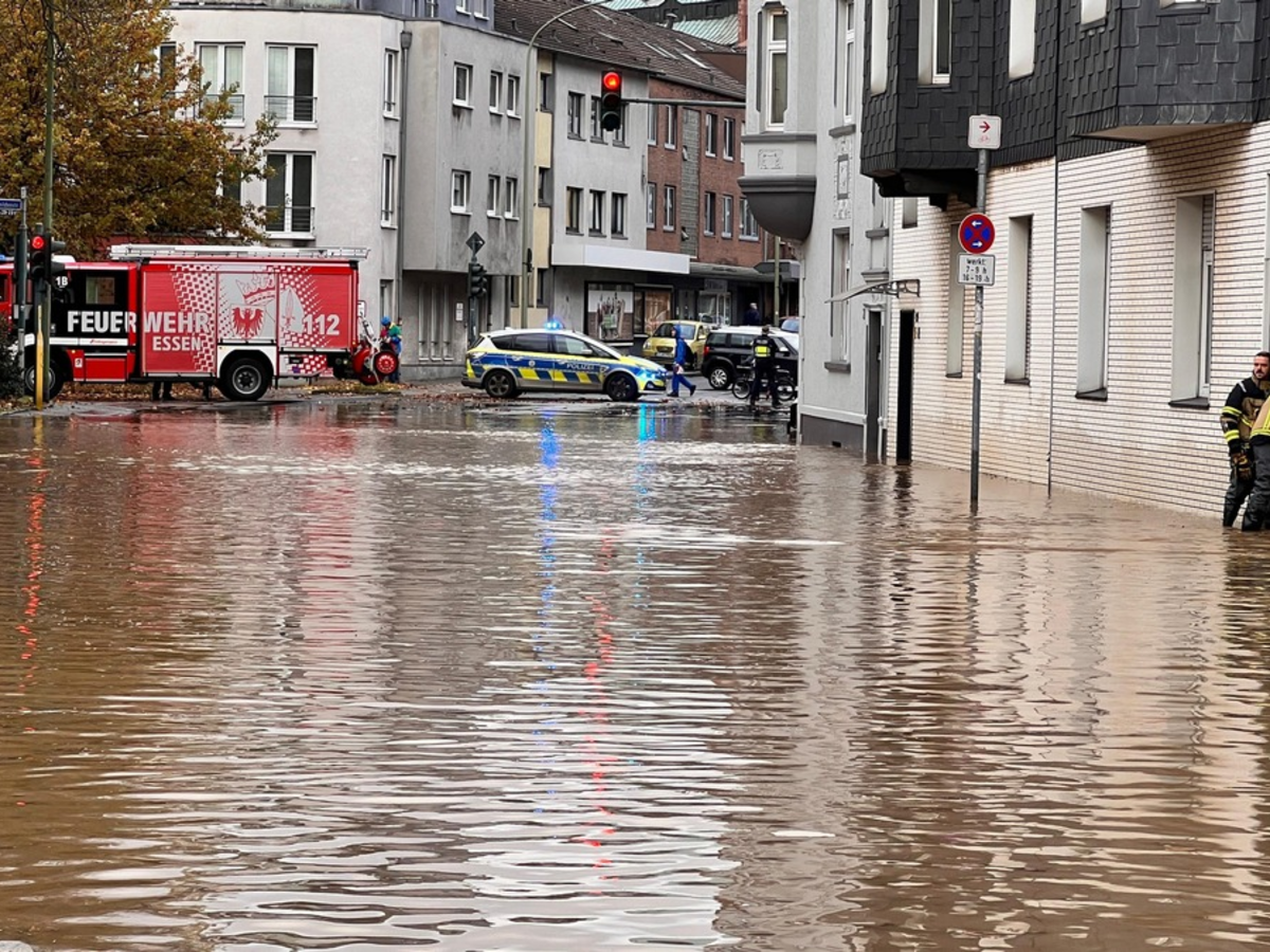 FW-E: Essen-Stoppenberg, Ernestinenstraße, 14.11.2023, 09:20 Uhr - Heute, am 14.11.2023 um 09:20 Uhr wurde der Feuerwehr Essen über den Notruf eine große Wassermenge auf der Ernestinenstraße im Stadtteil Stoppenberg gemeldet. Daraufhin entsandte diese unmittelbar ein Löschfahrzeug, um die Lage vor Ort zu beurteilen. Beim Eintreffen der ersten Einsatzkräfte stellten diese eine Überflutung der Straße im Bereich des Stoppenberger Platzes fest. Das Wasser auf der Straße stand ca. 40 cm hoch und war bereits in umliegende Gebäude eingedrungen. Da das Schadensausmaß zu diesem frühen Zeitpunkt nicht klar war, wurden unverzüglich weitere Einsatzkräfte nachalarmiert. Das Wasser trat aus einer beschädigten Hauptwasserleitung ca. 800 Meter entfernt aus und floss durch die örtliche Topografie hangabwärts bis zum Stoppenberger Platz. Nachdem die betroffenen Gebäude auf Personen kontrolliert waren, wurde der Bereich großflächig abgesperrt und die Gullydeckel angehoben, damit das Wasser auf der Straße durch diese ablaufen konnte. Insgesamt konnte in drei Gebäuden ein größerer Wasserschaden festgestellt werden. Bei zwei Mehrfamilienhäusern standen die Keller knietief unter Wasser, sodass die Feuerwehr hier mit Tauchpumpen tätig werden musste. Da eine Gefährdung durch Elektrizität nicht ausgeschlossen werden konnte, wurde das zuständige Energieversorgungsunternehmen benachrichtigt, das im Verlauf des Einsatzes die Gebäude stromlos schaltete. Anschließend wurden die beiden Keller ausgepumpt. In anderen betroffenen Objekten, wie beispielsweise einer Pizzeria und Garagen floss das Wasser ab. Verletzt wurde bei diesem Einsatz glücklicherweise niemand. Für die Dauer des Einsatzes und die anschließende Reinigung der Fahrbahn wurde die Ernestinenstraße voll gesperrt. Was die Ursache des Rohrbruchs war, wird nun ermittelt. Die Feuerwehr Essen war mit vier Löschfahrzeugen, Sonderfahrzeugen und dem Führungsdienst für rund zweieinhalb Stunden im Einsatz. (CS)
