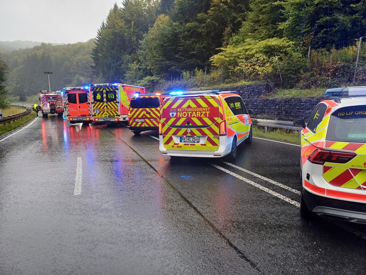 Horn-Bad Meinberg - Am Sonntag Nachmittag, den 05. Oktober 2025, wurde die Feuerwehr Horn- Bad Meinberg gemeinsam mit dem Rettungsdienst und der Polizei um 16:10 Uhr zu einem schweren Verkehrsunfall auf die Bundesstraße 1 zwischen Horn und Paderborn alarmiert. Aus bislang ungeklärter Ursache kam es im Bereich der Egge zu einem Verkehrsunfall zwischen zwei PKW. Bei Eintreffen der ersten Einsatzkräfte war der Verkehr bereits zum Erliegen gekommen. In den beiden Fahrzeugen befanden sich insgesamt vier Personen. Alle Beteiligten waren bereits außerhalb der Fahrzeuge und wurden vorbildlich durch mehrere Ersthelfer betreut. Durch die Feuerwehr wurde eine erste Versorgung vorgenommen und die Personen im weiteren Verlauf an die eintreffenden Rettungswagen übergeben. Für den ebenfalls alarmierten Rettungshubschrauber Christoph 13 aus Bielefeld wurde ein möglicher Landeplatz in unmittelbarer Nähe zur Einsatzstelle hergerichtet. An den verunfallten Fahrzeugen wurde der Brandschutz sichergestellt, das Batteriemanagement durchgeführt sowie auslaufende Betriebsmittel abgestreut und aufgenommen. Nach erfolgter Versorgung der Personen in den Rettungswagen wurden diese in entsprechende Kliniken transportiert. Da bei einer Person lebensgefährliche Verletzungen bestanden, wurde hier der Transport mit dem Rettungshubschrauber in eine Spezialklinik durchgeführt. Für die Polizei wurde im weiteren Verlauf die Unfallstelle ausgeleuchtet und abschließend gereinigt. Die Feuerwehr war mit mehreren Fahrzeugen bis ca. 22:00 Uhr im Einsatz. Insgesamt waren vier Rettungswagen aus Altenbeken, Bad Lippspringe, Steinheim sowie Paderborn, ein Notarzt aus Steinheim, der RTH Christoph 13 sowie der Organisatorische Leiter Rettungsdienst mit dem Leitenden Notarzt des Kreises Lippe und mehrere Streifenwagen der Polizei Lippe in dem Einsatz involviert. Zu Unfallursache und -hergang, Schadenshöhe sowie zu Personenschäden können von Seiten der Feuerwehr keine Angaben gemacht werden. Die Polizei hat die Ermittlungen aufgenommen.