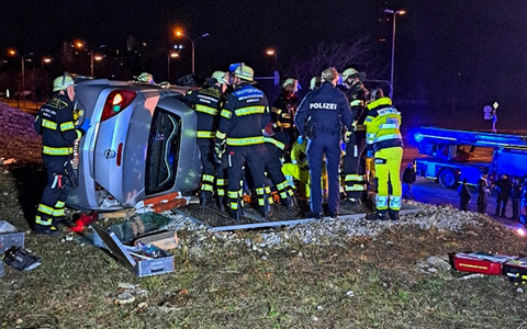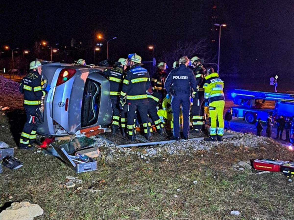 Als kurz darauf die Einsatzkräfte eintrafen, sahen sie den Opel oben auf einem Schutzwall liegen. Im Inneren des auf der Seite liegenden Fahrzeugs befand sich noch der 28-jährige, vermeintlich schwer verletzte Fahrer. Mit wenigen Handgriffen entfernten sie Windschutzscheibe und retteten den Mann aus dem Opel. Die Einsatzkräfte legten ihn auf eine Vakuummatratze in einer Schleifkorbtrage. So konnten sie den 28-Jährigen schonend und kontrolliert den Hang hinunterlassen. Nach einer notärztlichen Erstuntersuchung transportierte ihn die Rettungswagenbesatzung in den Schockraum einer Münchner Klinik. Hier stellte sich heraus, dass der Mann den Unfall völlig unbeschadet überstanden hatte.