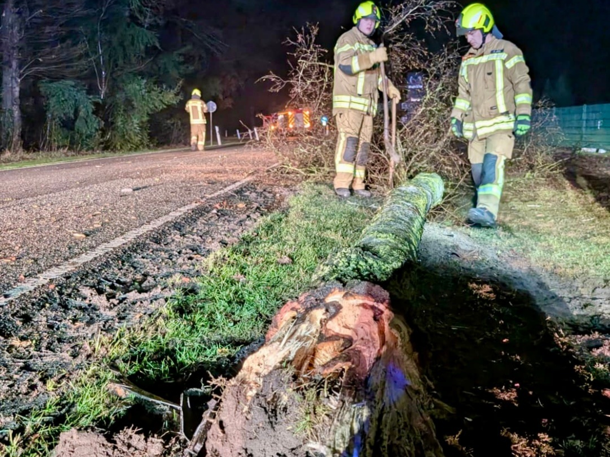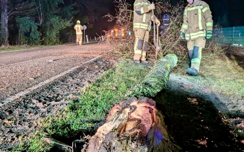 Der Baum, mit dem der PKW kollidiert war, lag entwurzelt zwischen Straße und Radweg und wurde von der Feuerwehr entfernt, um eine Behinderung des Verkehrs auszuschliessen.
