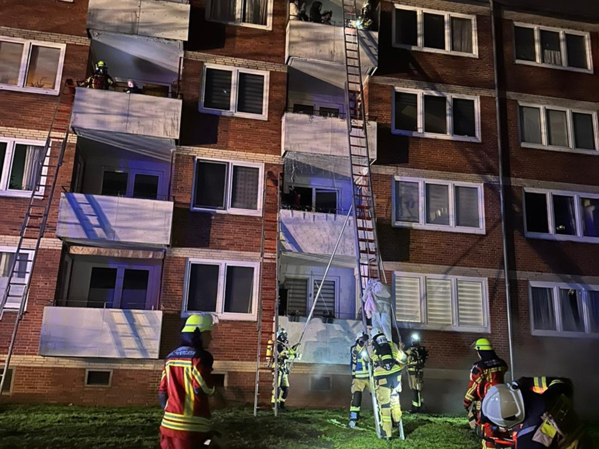 02.01.2026 - 09:23:21 | presseportal.deDurch die im Feuerwehrhaus Kaltenkirchen bestehende Silvesterbereitschaft vieler Feuerwehrkameradinnen und Kameraden, waren die ersten Einsatzkräfte sehr schnell an der Einsatzstelle. Vor Ort bestätigte sich die Lage und stellte sich durchaus dramatisch dar. Aus dem Hauseingang des Mehrfamilienhauses drang dichter schwarzer Rauch aus dem Objekt aus. Mehrere Anwohner riefen in ihren Wohnungen und auf dem Balkon stehend um Hilfe.