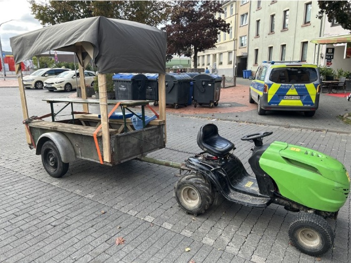 Mitte September fiel einer Streife der Polizeistation Butzbach im Butzbacher Stadtgebiet ein Aufsitzrasenmäher samt Anhänger auf. Auf der Ladefläche des Anhängers beförderte der Fahrer, ein 16-jähriger aus Butzbach, mehrere Personen auf einer Bierzeltgarnitur. Die Ordnungshüter stoppten das Gefährt und führten eine Kontrolle durch. Außerdem zogen sie ihre Kollegen des Regionalen Verkehrsdienstes Wetterau hinzu. Die Polizisten stellten das gesamte Gespann sicher. Bei genauerer Betrachtung des Aufsitzrasenmähers durch die Wetterauer Verkehrsexperten stellten diese fest, dass das Fahrzeug kurzgeschlossen wurde, sodass sich der Verdacht eines Diebstahls ergab. Im Zuge der aufwendigen Ermittlungen legte der 16-Jährige einen vermeintlichen Eigentumsnachweis vor, der jedoch durch weitere Ermittlungen als gefälscht entlarvt werden konnte. Den Beamten gelang es nun den rechtmäßigen Eigentümer zu ermitteln und ihm das Fahrzeug wieder auszuhändigen. Den Anhänger beschlagnahmten die Polizisten und prüfen derzeit noch dessen Herkunft. Gegen den Jugendlichen wird nun unter anderem wegen des Verdachts des Diebstahls, des Fahrens ohne Fahrerlaubnis und des Verstoßes gegen das Pflichtversicherungsgesetz ermittelt.