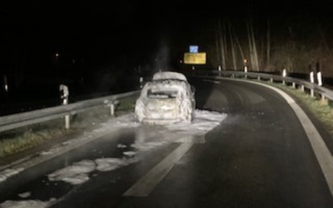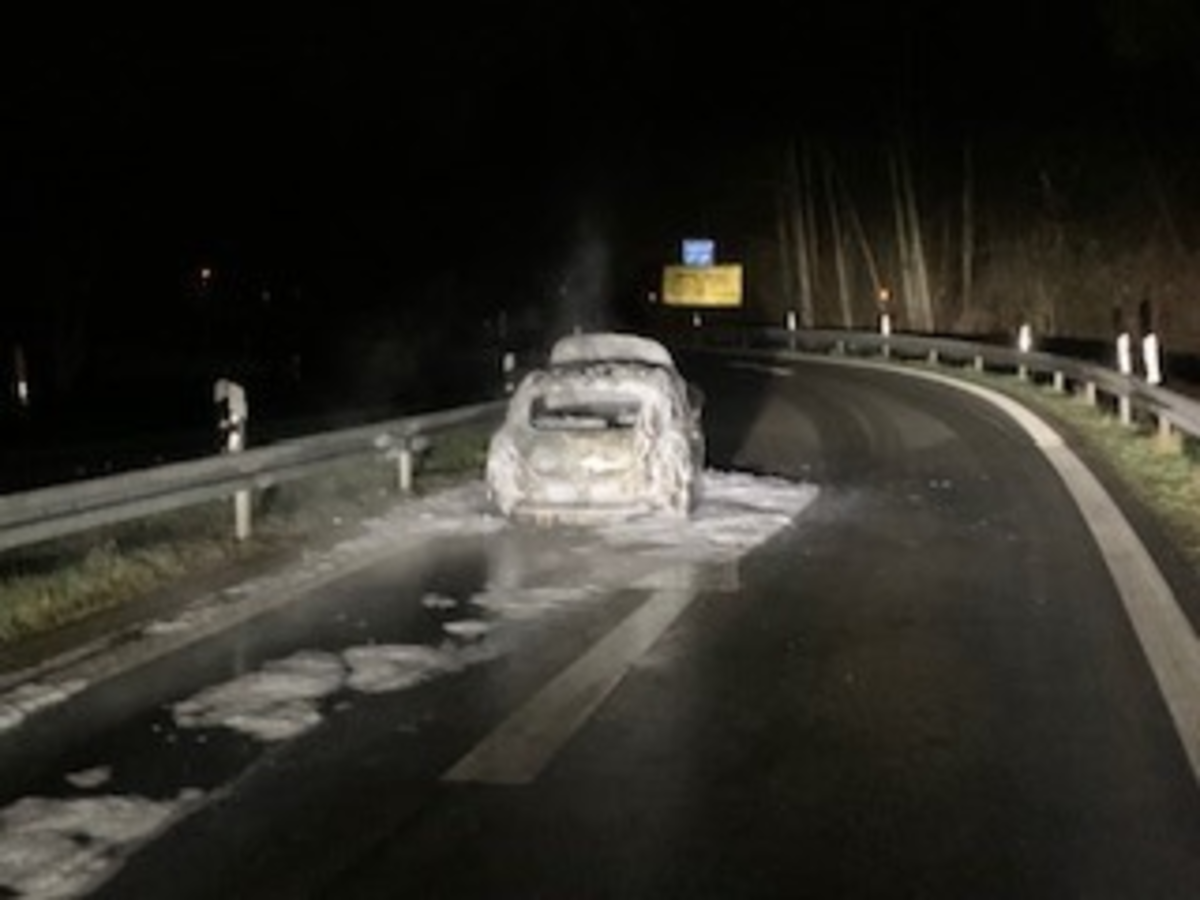 FW-GLA: PKW-Brand an der Autobahnabfahrt BAB 2 Gladbeck-Ellinghorst - PKW stand im Vollbrand