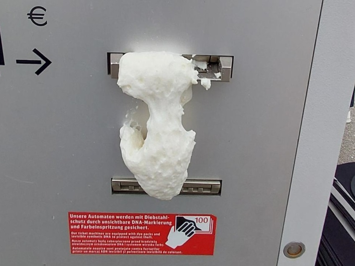 Bundespolizisten wurden durch einen Hinweisgeber auf den Umstand aufmerksam gemacht und nahmen den Automaten vor Ort in Augenschein. Die Beamten fanden einen Automaten vor, dessen Münzeinwurf, Geldeinzug und Ausgabeschacht mit herkömmlichen Bauschaum befüllt und verdichtet waren. Der Schaum war bereits vollständig ausgehärtet, sodass der Tatzeitraum einige Stunden zurückliegen musste.