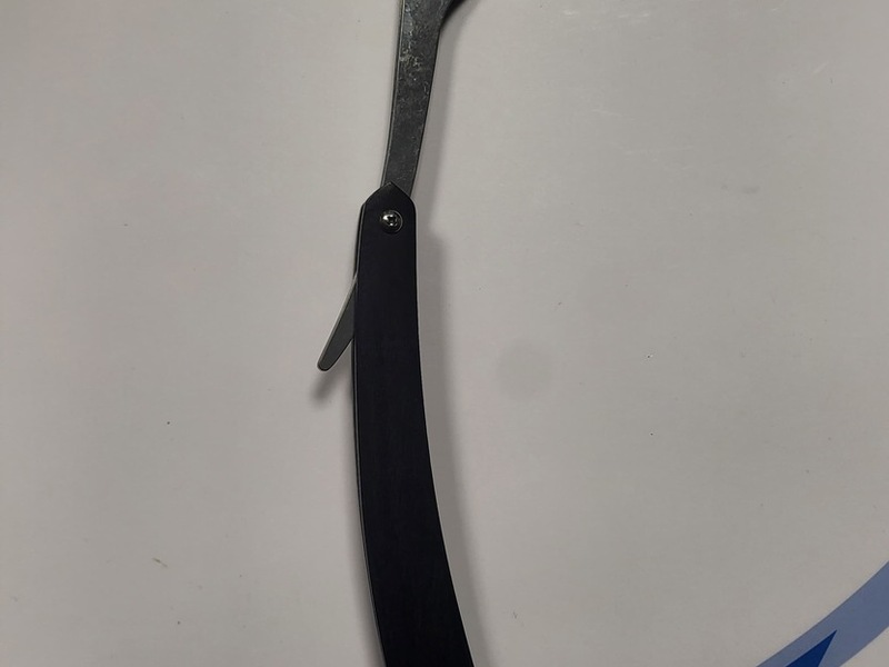 "Bei der Durchsuchung der Bekleidung wurde das mutmaßliche Tatmittel, ein Rasiermesser, in einer Hosentasche des Beschuldigten aufgefunden und sichergestellt." (siehe Foto vom Rasiermesser in der digitalen Pressemappe)