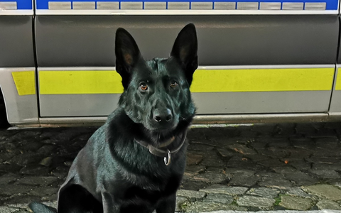 Am Samstag stellte eine Zeugin im Hamburger Stadtteil Osdorf fest, dass ein zunächst Unbekannter eine Trumme in eine Türscheibe geworfen und sich somit Zutritt zu einem Einkaufszentrum verschafft hatte. Die Polizeidiensthündin Ria konnte den Täter, einen 23-jährigen Deutschen, wenig später im Gebäude stellen. Er wurde nach den ersten kriminalpolizeilichen Maßnahmen entlassen.