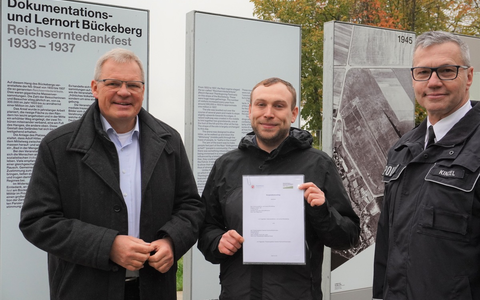Landrat Dirk Adomat ist ebenfalls überzeugt, dass die Zusammenarbeit einen wichtigen Beitrag zur Demokratiebildung leistet: "Mit dem Dokumentations- und Lernort Bückeberg haben wir einen herausragenden Bildungsort in unserem Landkreis. Hier wird am historischen Ort gezeigt, wie Propaganda funktioniert und wie Zustimmung zu einer Diktatur erzeugt werden kann. Das Wissen darüber ist für den Schutz unserer Demokratie von großer Bedeutung. Die Polizistinnen und Polizisten werden hier einen tiefen Einblick erhalten, wodurch die ohnehin schon gute Demokratiebildung unserer Polizeikräfte noch weiter gestärkt werden wird. Es wäre sehr zu begrüßen, wenn andere Organisationen diese Kooperation als Blaupause benutzen würden."