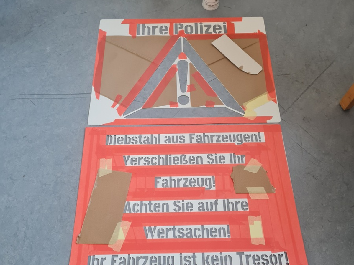 Anhalten dazu soll Sie auch der Einsatz einer Sprühschablone mit Warndreieck-Symbol und den o.g. Appellen bzw. Präventionsbotschaften. Die Sprühschablone ist z. B. in den Bereichen des Hans-Böckler-Platzes, Ausgang Bahnhof-West und dem Willy-Brandt-Platz aufgesprüht. Weitere Örtlichkeiten folgen.