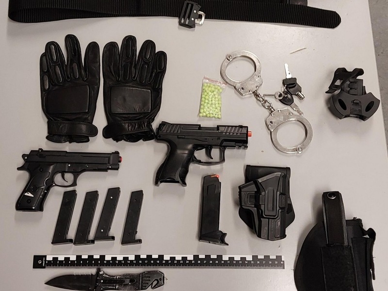 Im Rahmen der Durchsuchung nach gefährlichen Gegenständen und weiteren Diebesgut entdeckten die Beamten ein regelrechtes Arsenal am Körper des 22-Jährigen. Mit Holstern am Gürtel trug er zwei Anscheinswaffen (Softair) mit insgesamt fünf Magazinen samt Softair-Munition, ein zugriffsbereites Einhandmesser, ein paar Handschellen und taktische Schutzhandschuhe. Die Waffen und Gegenstände wurden sichergestellt.