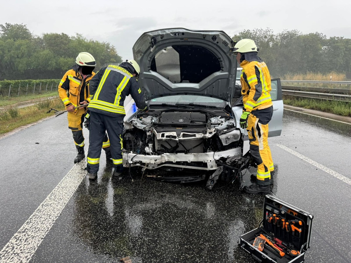 Haßloch - Am Dienstag, 09.09.2025, gegen 10 Uhr, ereignete sich auf der A65 in Fahrtrichtung Mannheim, kurz vor der Anschlussstelle Haßloch, ein Verkehrsunfall. Ein PKW geriet bei Starkregen aufgrund von Aquaplaning ins Schleudern und kollidierte mit einem Kleintransporter.