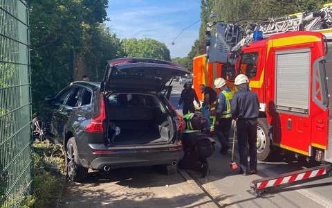 09.07.2024 - 19:12:59 | presseportal.deEin SUV ist von der Fahrbahn abgekommen. Dabei ist das Fahrzeug mit zwei auf dem Gehweg befindlichen Radfahrern kollidiert und in einem Zaun zum Stehen gekommen.