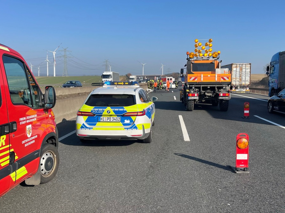 Durch den Verkehrsunfall zog sich der Fahrzeugführer Verletzungen zu und wurde nach der Behandlung durch den Rettungsdienst einem Hildesheimer Krankenhaus zugeführt. Weiterhin liefen Betriebsstoffe aus dem Fahrzeug aus und es erstreckte sich ein großes Trümmerfeld über alle Fahrstreifen, wodurch umfangreiche Reinigungsmaßnahmen durch die Autobahnmeisterei Hildesheim erforderlichen waren. Des Weiteren sind die ehrenamtlichen Einsatzkräfte der freiwilligen Feuerwehr Bockenem im Einsatz gewesen.