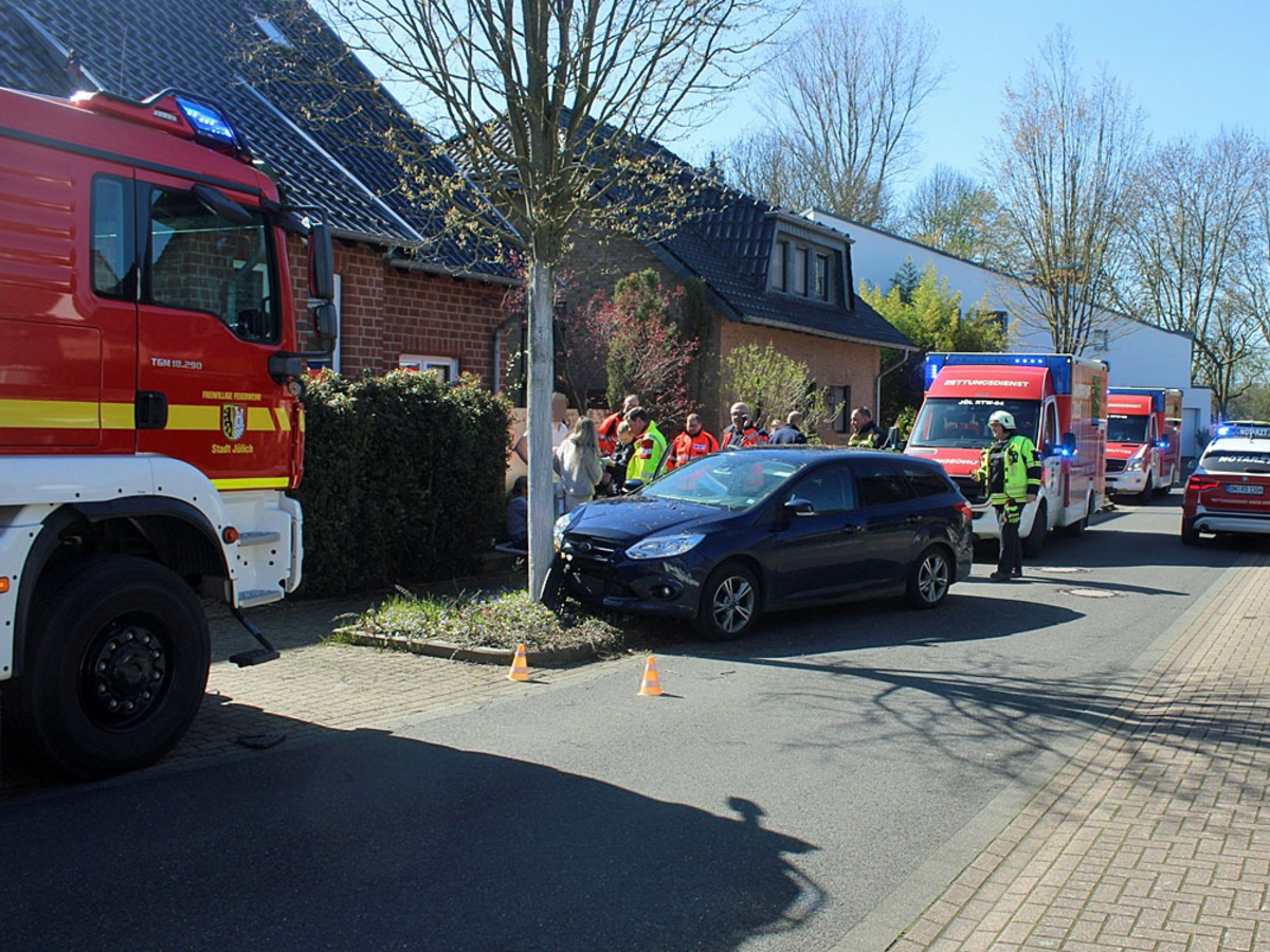 02.04.2026 - 12:00:29 | presseportal.deDie 26-jährige Fahrerin des Pkw aus Jülich war um 14:41 Uhr auf der Hermann-Barnikol-Straße in Fahrtrichtung Victor-Gollancz-Straße unterwegs. Mit ihr im Fahrzeug befanden sich ihre Kinder im Alter von ein und vier Jahren. Beide waren ordnungsgemäß in Kindersitzen auf der Rückbank gesichert. Nach Angaben der Fahrerin hatte eines der Kinder plötzlich während der Fahrt angefangen stark zu husten, so dass sie kurzzeitig abgelenkt war. Dadurch sei sie aus langsamer Fahrt nach rechts von der Fahrbahn abgekommen und ohne Fremdeinwirkung frontal mit einem Baum kollidiert.
