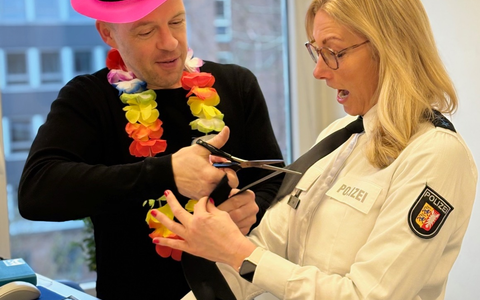 Die Polizei wertet den Vorfall als gelungenen Beweise dafür, dass Humor und Tradition auch im Arbeitsalltag mal ihren Platz haben dürfen. In diesem Sinne wünscht die Pressestelle der Polizeidirektion Kiel eine schöne Weiberfastnacht und Faschingszeit.