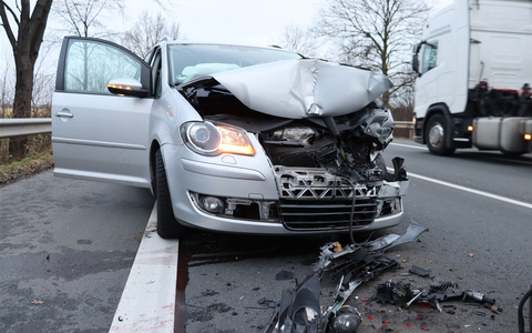 Kirchlengern - (sls) Auf der B239 in Kirchlengern kam es am frühen Donnerstagmorgen (25.1.) zu einem Verkehrsunfall kurz vor dem Hüller Kreuz. Gegen 07.30 Uhr befanden sich mehrere Fahrzeug auf der Quernheimer Straße in Richtung Kirchlengern und mussten verkehrsbedingt vor nahenden Ampelanlage des Kreuzungesbereiches Lübbecker Straße/Hüller Straße warten. Eine 21-jährige Fahrerin aus Hüllhorst erkannte die wartenden Fahrzeuge vor der Ampel zu spät und fuhr mit ihrem VW Touran gegen den vor ihr bereits stehenden Renault Master eines 36-Jährigen aus Hiddenhausen. Durch die Wucht des Aufpralls wurde der Renault so weit nach vorne geschoben, dass dieser gegen einen Mini Clubman stieß. Der wurde zur Unfallzeit von einem 23-Jährigen aus Kirchlengern geführt. Die Hüllhorsterin wurde durch die Kollision leicht verletzt und begibt sich selbständig in ärztliche Behandlung. Alle Fahrzeuge wurde so stark beschädigt, dass sie von der Unfallstelle abgeschleppt werden mussten. Der Sachschaden wird auf ca. 10.000 Euro geschätzt.