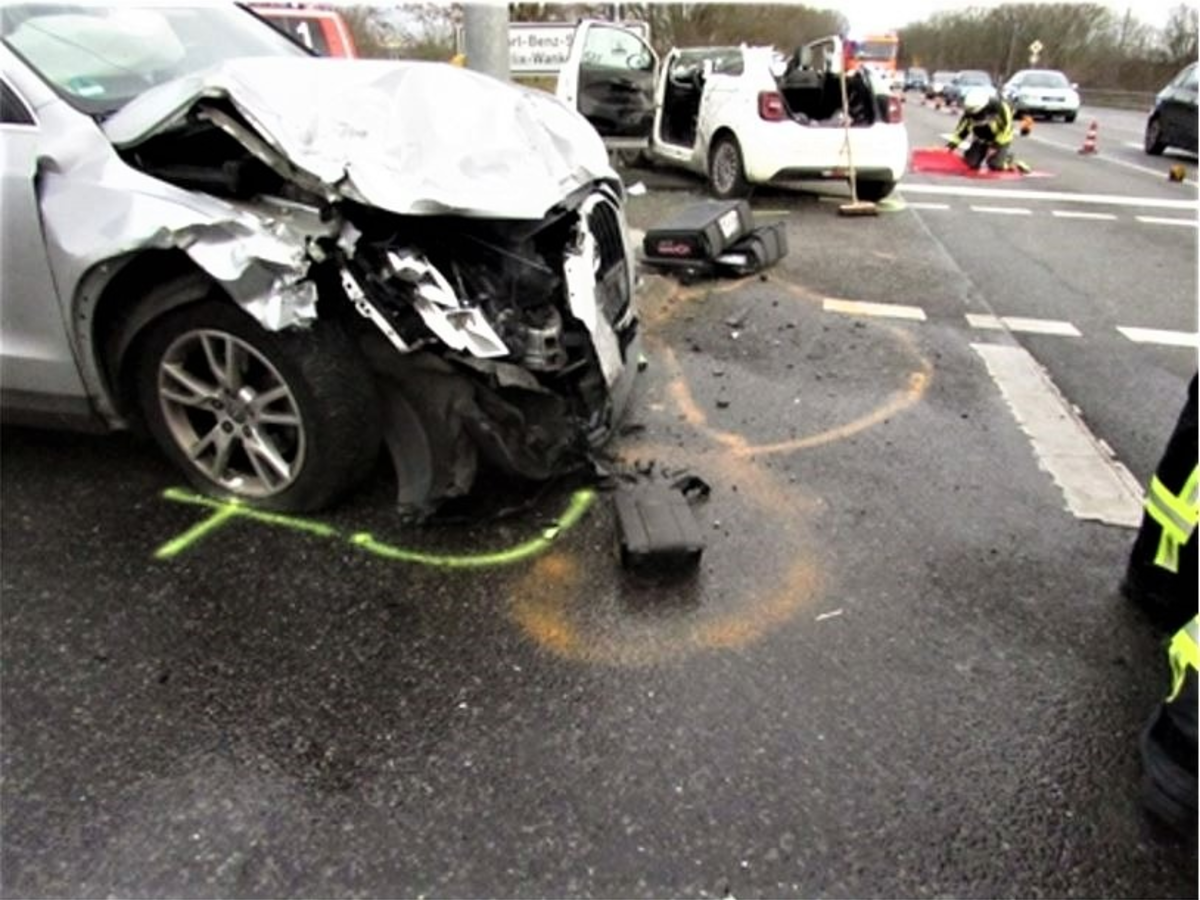 Gegen 13:20 Uhr fuhr der 20-Jährige mit seinem Fiat 500 auf der Karl-Benz-Straße und beabsichtigte nach links auf die Berghausener Straße in Richtung Langenfeld abzubiegen, als es zu einem heftigen Zusammenstoß mit einem entgegenkommenden Audi Q3 kam. Der Audi-Fahrer, der seine Fahrt aus Richtung Autobahnauffahrt 59 geradeaus in die Karl-Benz-Straße fortsetzten wollte, sowie der 20-Jährige fuhren laut Zeugenaussagen mit überhöhter Geschwindigkeit in den Kreuzungsbereich ein. Beide Fahrzeuge wurden durch die Kollision erheblich beschädigt. Zudem wurde der 20-jährige Fahrer derart in seinem Wagen eingeklemmt, dass ihn nur noch die alarmierten Kräfte der Feuerwehr befreien konnten: Mit speziellem Werkzeug entfernten sie das Dach des Fiat und konnten den schwerverletzten Mann bergen.