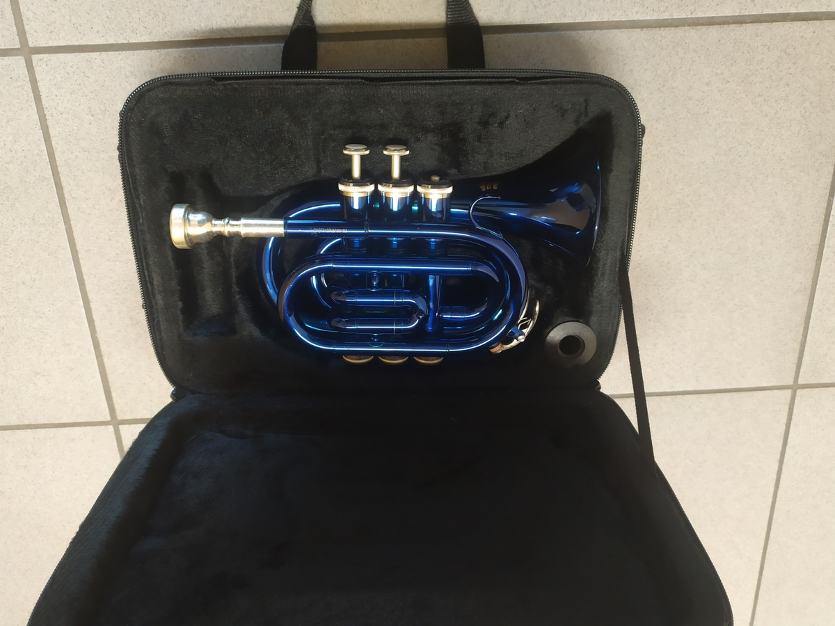 Kreis Heinsberg - Im Rahmen einer Wohnungsdurchsuchung fanden Ermittler der Kriminalpolizei eine Minitrompete der Firma Thomann. Die Gesamtumstände sprechen dafür, dass das Instrument aus einer begangenen Straftat stammt. Wer kann sachdienliche Angaben dazu machen, wem die blaue Trompete gehören könnte? Hinweise nimmt das Kriminalkommissariat der Polizei in Geilenkirchen unter der Telefonnummer 02452 920 0 entgegen. Zudem besteht die Möglichkeit, Hinweise über die Internetseite der Polizei Heinsberg zu geben oder über den direkten Link: https://polizei.nrw/artikel/anzeige-hinweis.