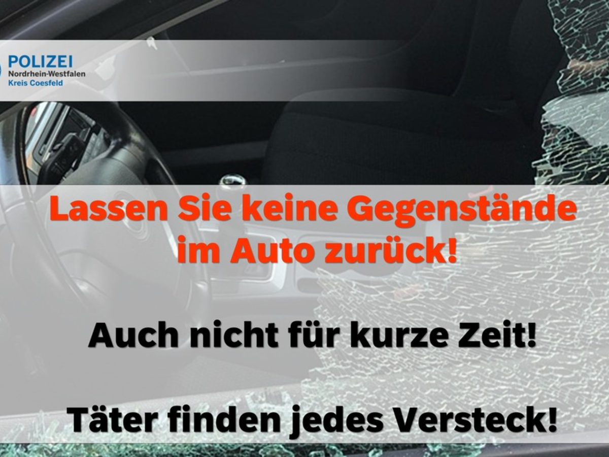 12.04.2024 - 09:04:55 | presseportal.deErmittler sicherten Spuren an den Tatorten und leiteten mehrere Strafverfahren ein. Die derzeit noch unbekannten Täter erbeuteten geringe Bargeldbeträge und andere Wertgegenstände. Sachdienliche Hinweise, die zur Ermittlung der Täter führen könnten, werden telefonisch unter 06381/919-0 oder per E-Mail an pikusel@polizei.rlp.de entgegen genommen. Nach derzeitigen Erkenntnissen wurden gezielt ausschließlich unverschlossene Autos angegangen, weshalb die Polizei erneut eindringlich appelliert: Bieten Sie Dieben keine Chance! Lassen Sie niemals Wertgegenstände im Fahrzeug zurück und vergewissern Sie sich stets, dass Sie Ihr Fahrzeug verschlossen haben.|pikus