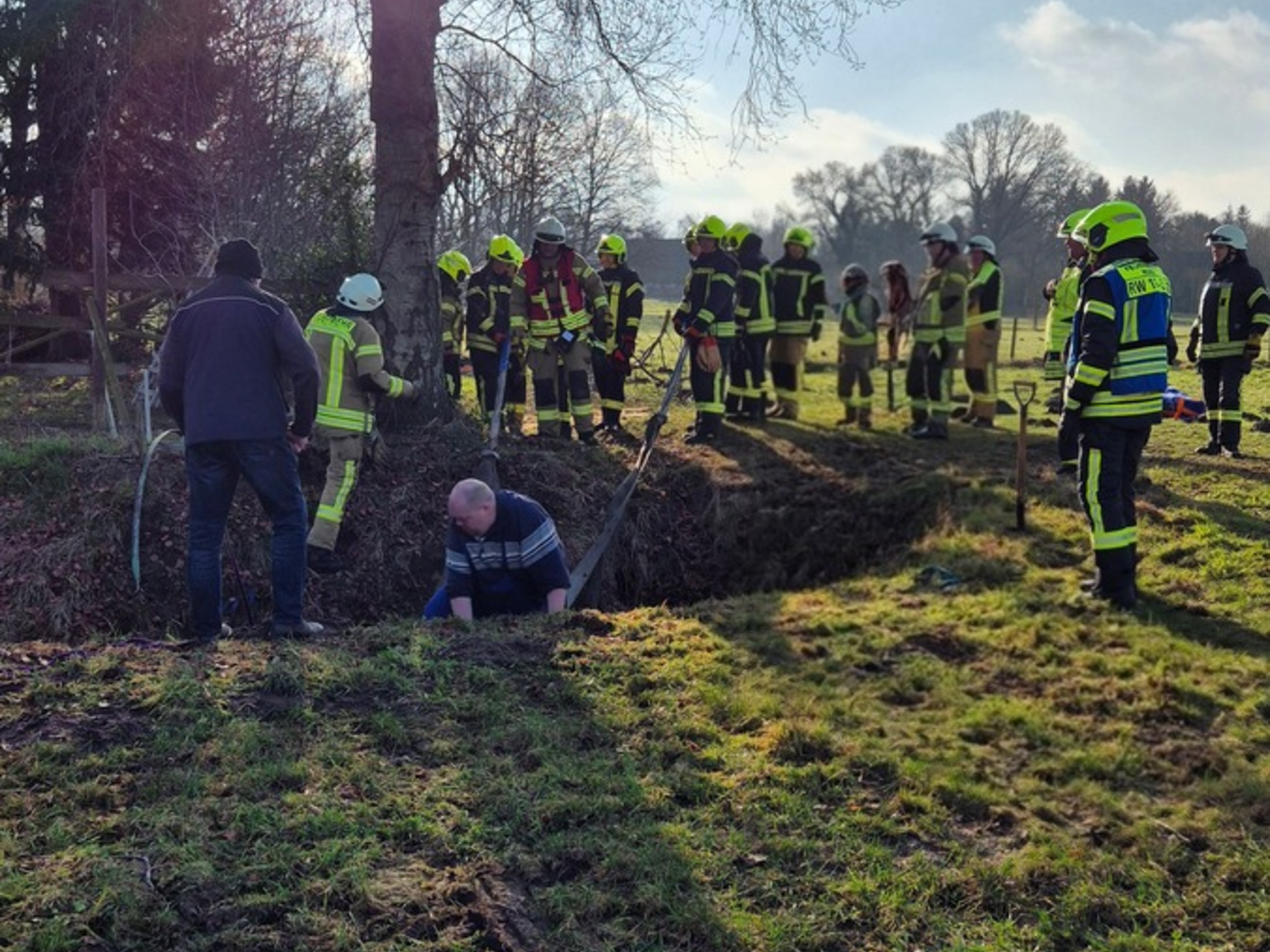 Landkreis Oldenburg - Am vergangenen Sonntag, den 01.03.26, wurde um 08:42 Uhr die Feuerwehr Hude gemeinsam mit der Feuerwehr Neerstedt zu einer Tierrettung in den Kleinen Klosterweg in der Gemeinde Hude alarmiert. Dort war ein Pony in einen Graben gerutscht und konnte sich aus eigener Kraft nicht mehr befreien. Die Feuerwehr Neerstedt wurde aufgrund ihrer Ausbildung und Ausrüstung im Bereich der Großtierrettung direkt mit alarmiert. Erste Rettungsversuche unternahm die Besitzerin gemeinsam mit einem Landwirt, jedoch ohne Erfolg. Die Einsatzkräfte bereiteten daraufhin die weitere Rettung vor. Auch ein Tierarzt war vor Ort, um den Gesundheitszustand des Tieres zu überwachen. Gemeinsam wurde das Pony schließlich schonend aus dem Graben gerettet. Dazu wurden Rundschlingen unter dem Tier positioniert, um es vorsichtig auf eine Kunststoffplattform zu ziehen. Mit vereinten Kräften gelang es den Feuerwehrleuten anschließend, das Pony samt Plattform aus dem Graben zu ziehen. Das Tier war unterkühlt und stark geschwächt und wurde in die Obhut der Besitzerin gegeben. Insgesamt waren 37 Einsatzkräfte der beiden Feuerwehren im Einsatz. Nach rund einer Stunde war der Einsatz beendet.
